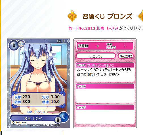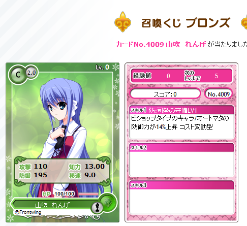既に載せてあるけど、ガレクシアさん。レア度Cのキャラの中では一番の攻撃キャラだと思っています。