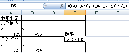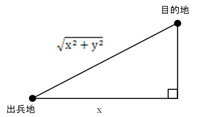 誰もが習ったであろうピタゴラスの定理で距離が計算できます。